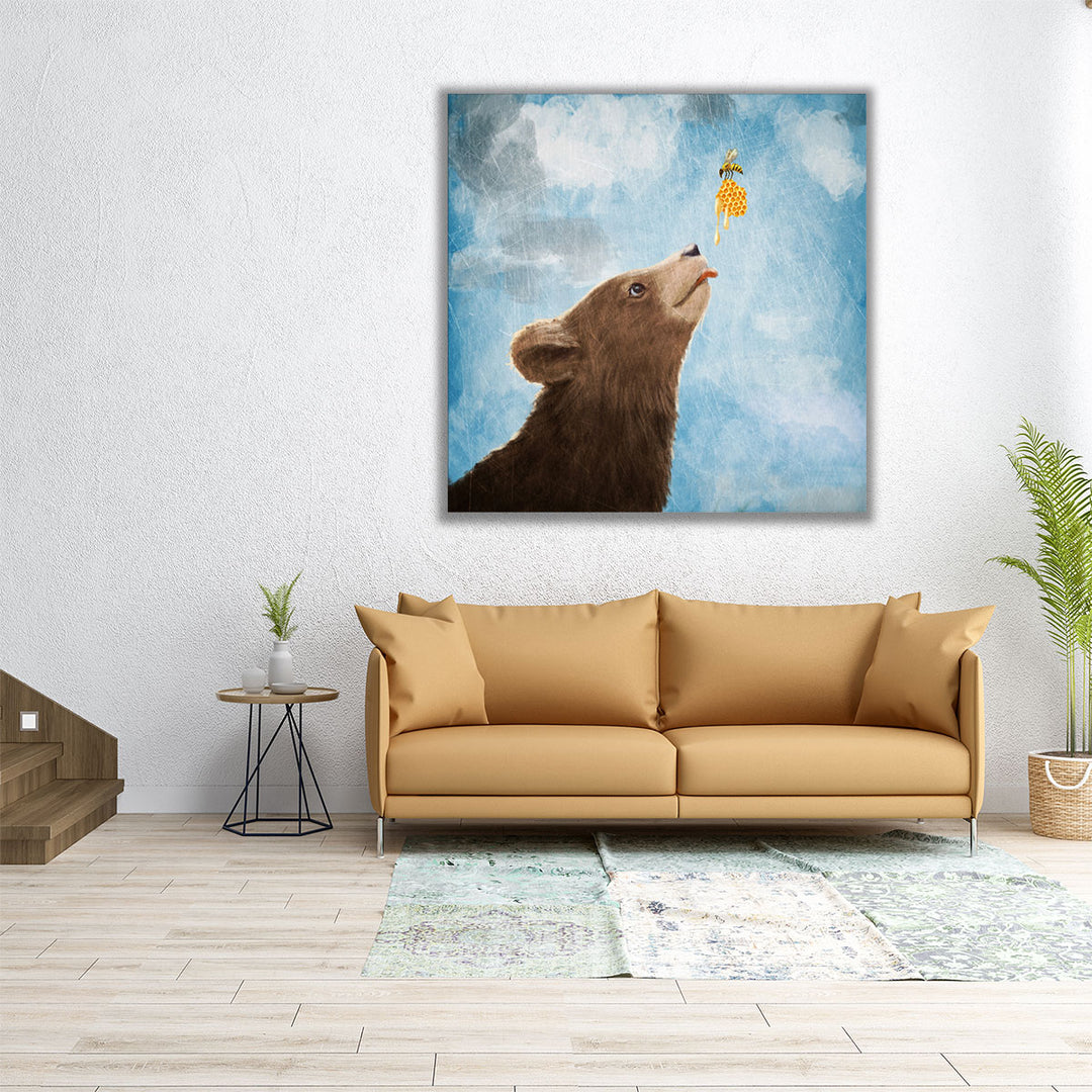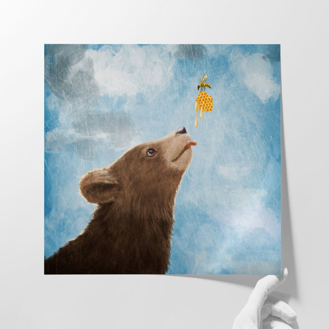 Bear Cub and Bee with Honeycomb - Canvas Print Wall Art