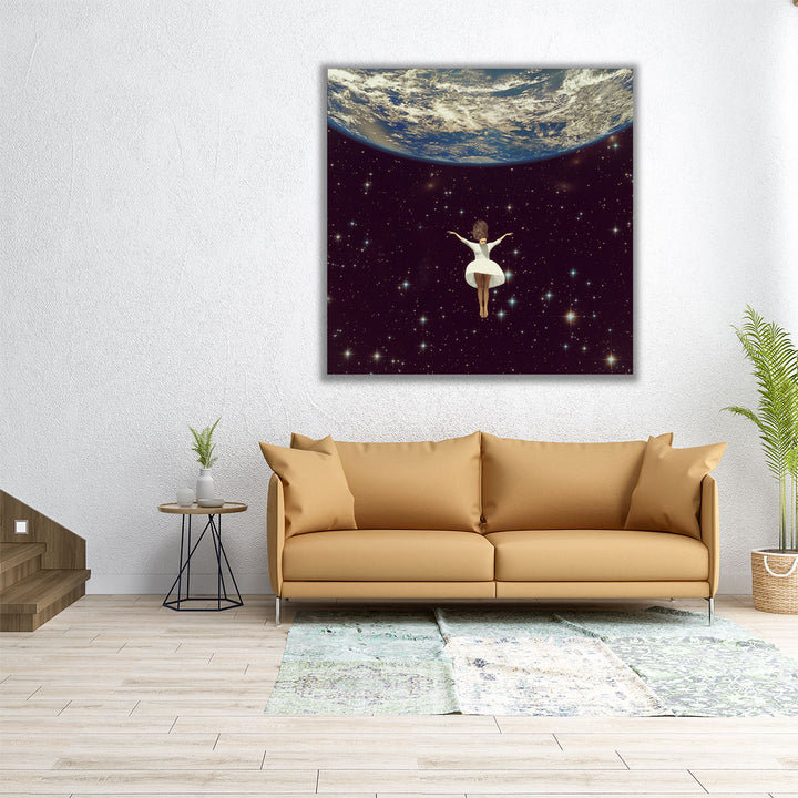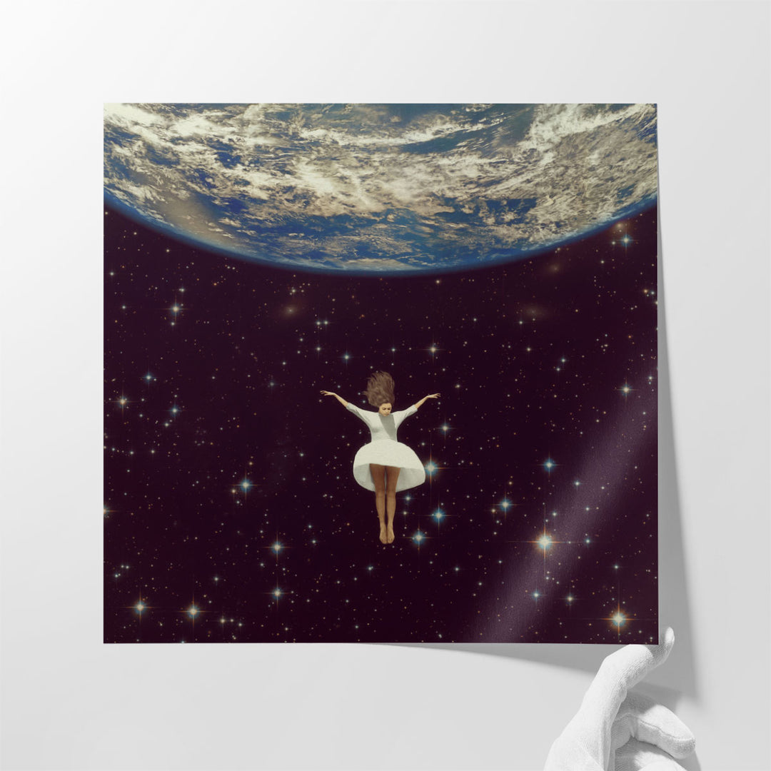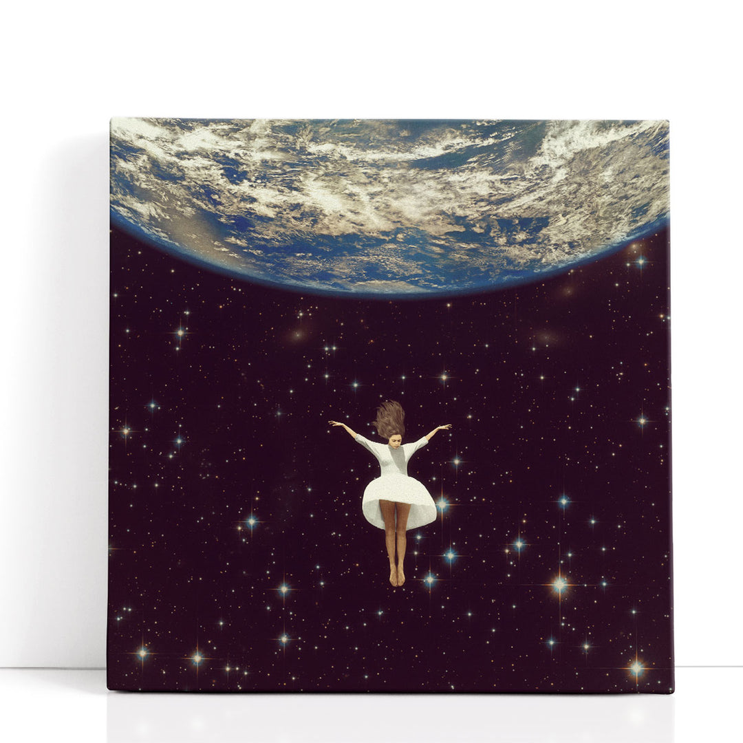 A dreamy composition blending a woman's silhouette with celestial elements, stars, and cosmic depth inspired by astronomy.