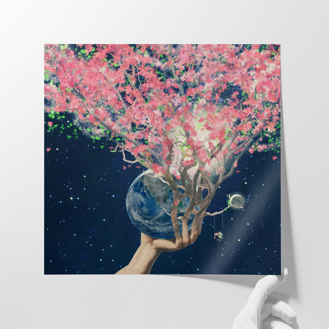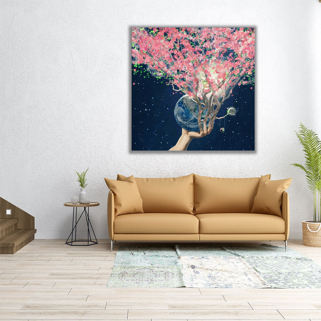 A surreal romantic scene featuring pink floral elements, couples, and dreamy theme-perfect as a heartfelt gift or a statement of love.