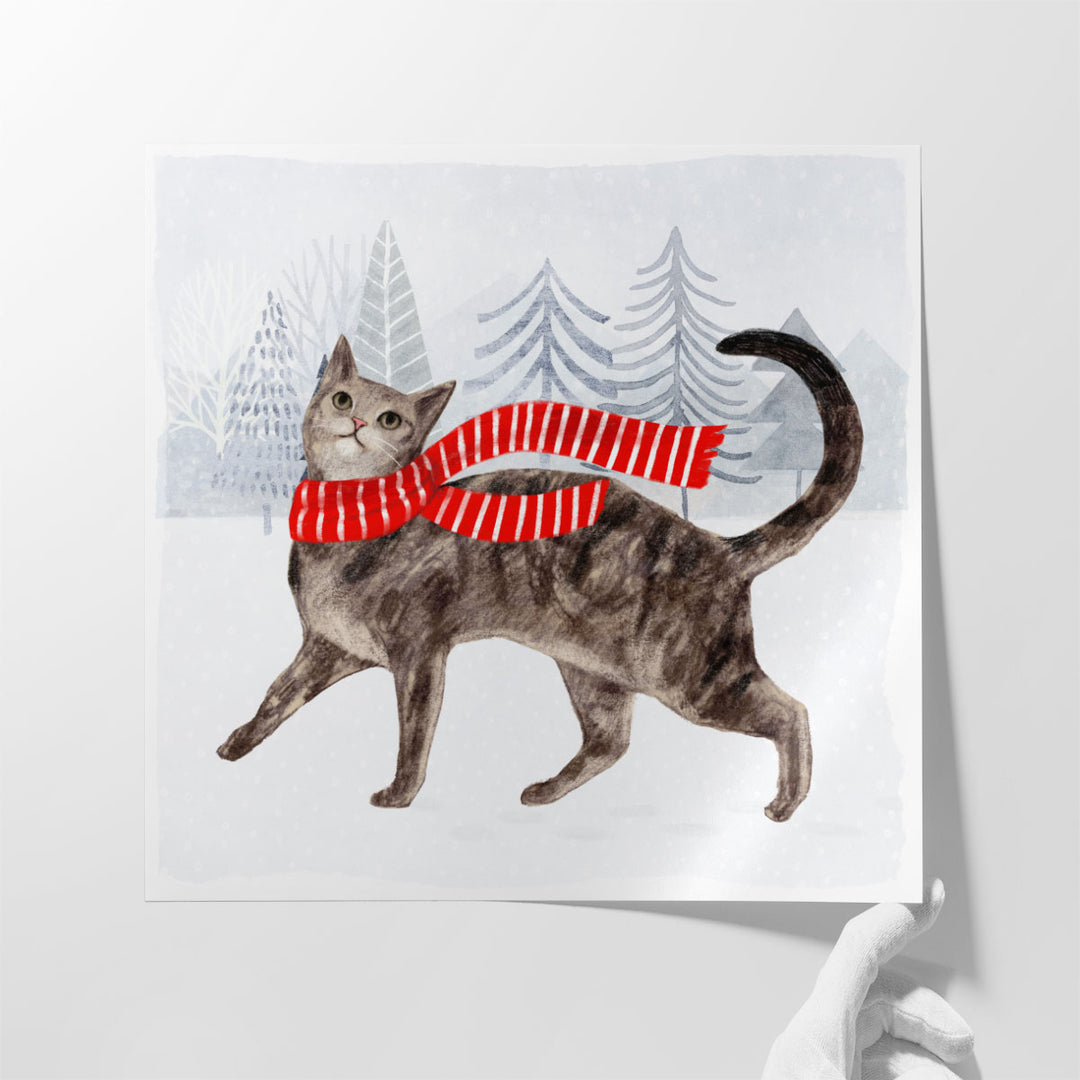 This artwork features a charming cat in shades of white, red, and brown, perfect for festive home decor.