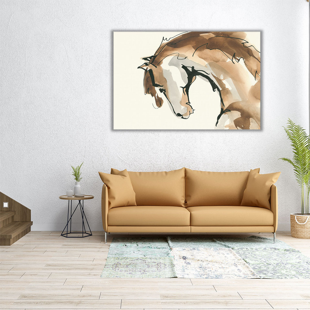 Watercolor Horse Canvas Wall Art brown neutral brushstrokes
