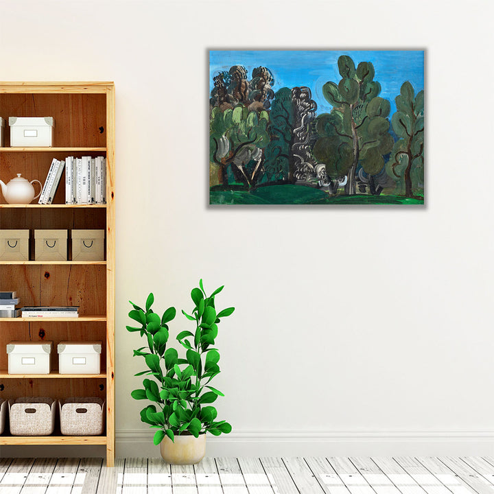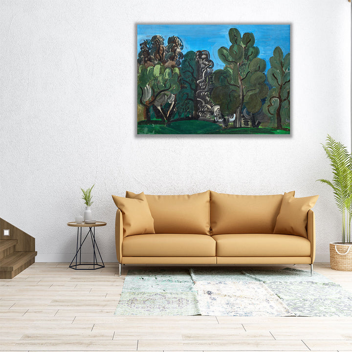 Lush green trees meet vibrant blue tones in this lively composition, reflecting Dufy’s charm and a timeless, nature-inspired aesthetic.