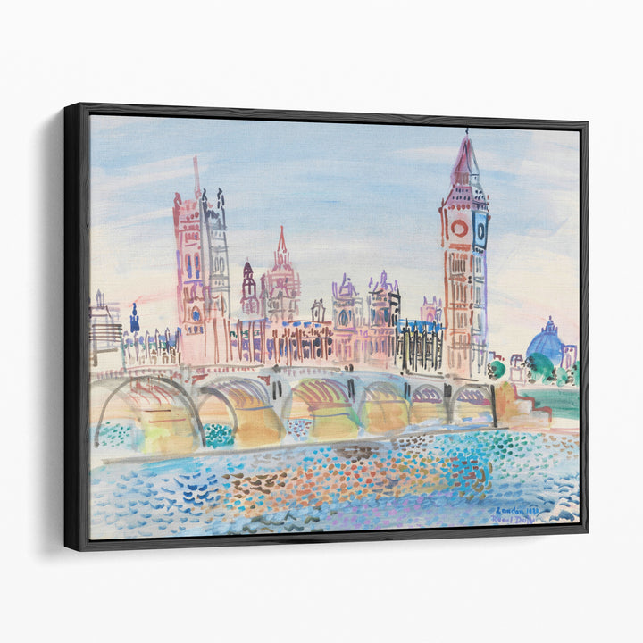 This abstract architectural scene blends neutral and blue hues, capturing the charm of London’s parliament with Dufy’s signature expressive style.