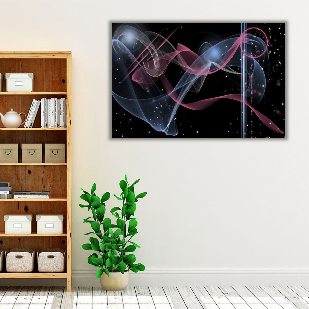 Black Abstract Art and Contemporary Wall Art piece sweeps across your decor with subtle touches of blue and pink. Soft pastel hues and dynamic strokes evoke gentle movement and serene calm. Perfect above a sofa in the living room or as 48x32 Bedroom Wall Decor, it creates a tranquil focal point. This elegant composition makes a thoughtful gift for design lovers.