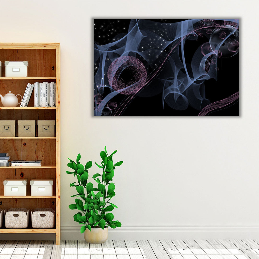 Dark and expressive, this Black Abstract Art showcases fluid blue shapes drifting across a dramatic black background. The contrast of motion and shadow creates a powerful visual effect, making it ideal for sophisticated hallway styling or as a modern focal point in a living room. Offered in a range of finishes and frames, this piece delivers artistic intensity and elegance as standout Hallway Wall Decor.