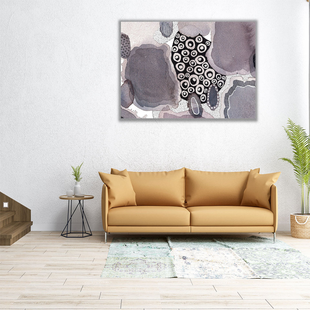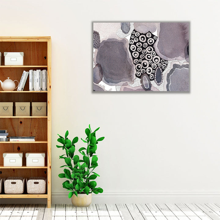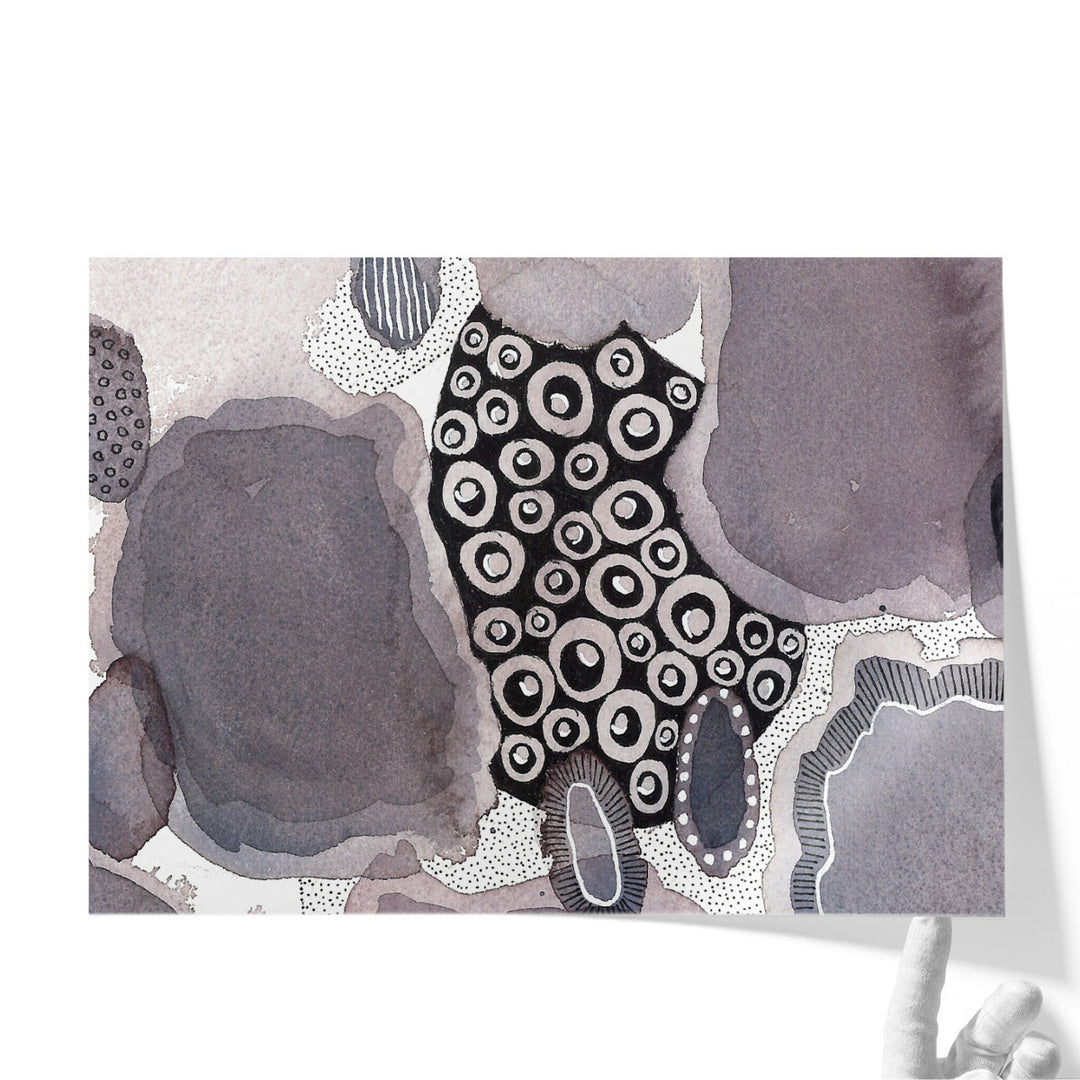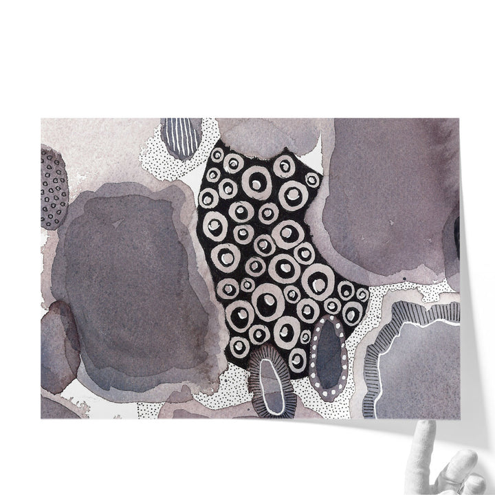 Abstract fluidity takes shape through delicate watercolor strokes in gray and black, creating a captivating visual rhythm.