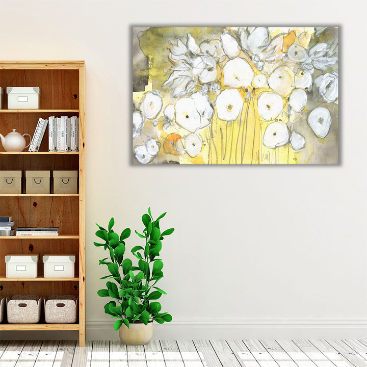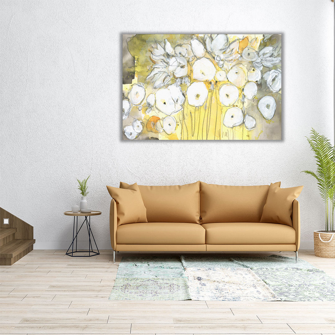 A captivating impressionist abstract piece, this artwork beautifully presents a delicate white flower on a textured backdrop.