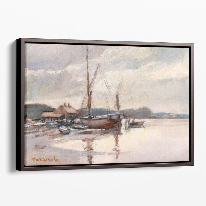 This artwork captures a serene coastal view with yachts, evoking a sense of relaxation and nautical charm.