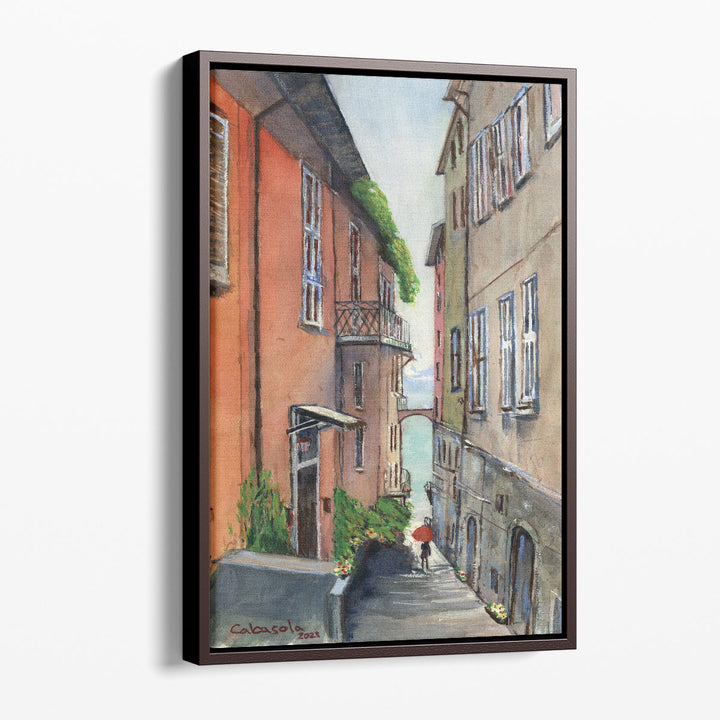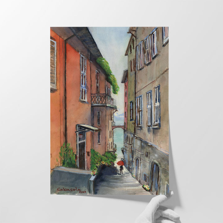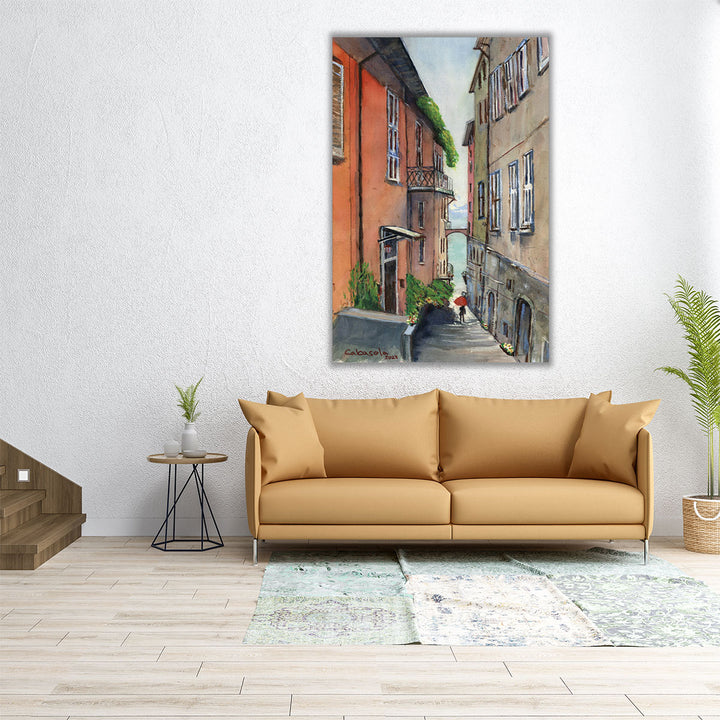 This artwork captures a charming street view, offering a scenic perspective of Lake Como with an inviting and picturesque ambiance.