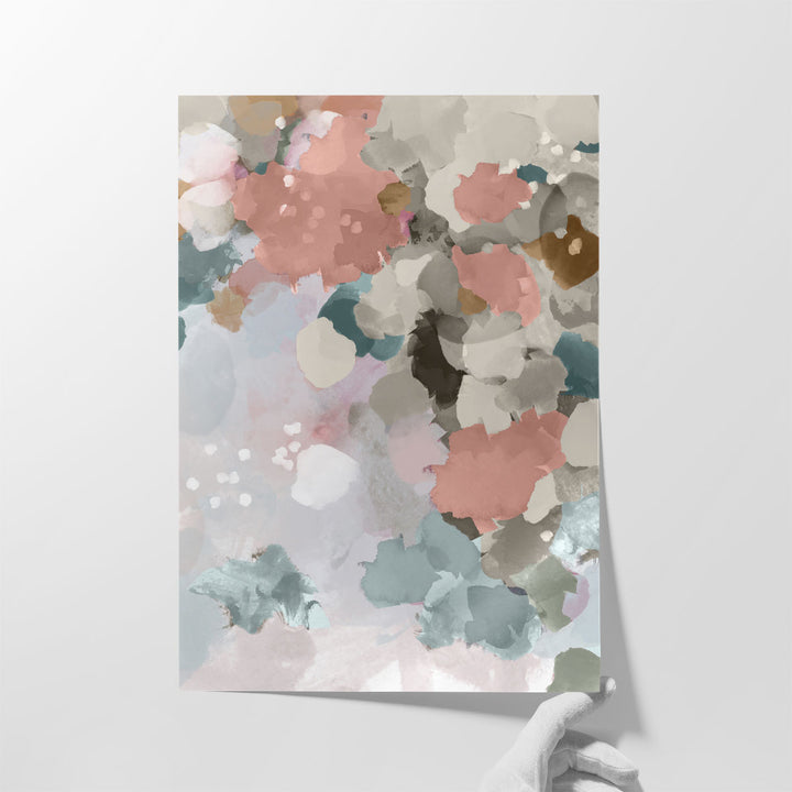 The abstract design brings together neutral and pink hues to create a captivating visual experience.