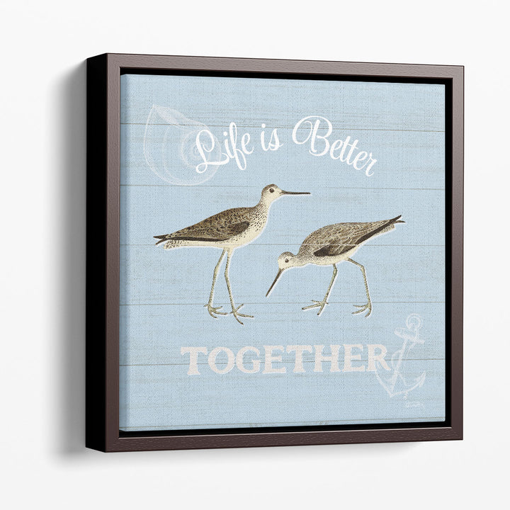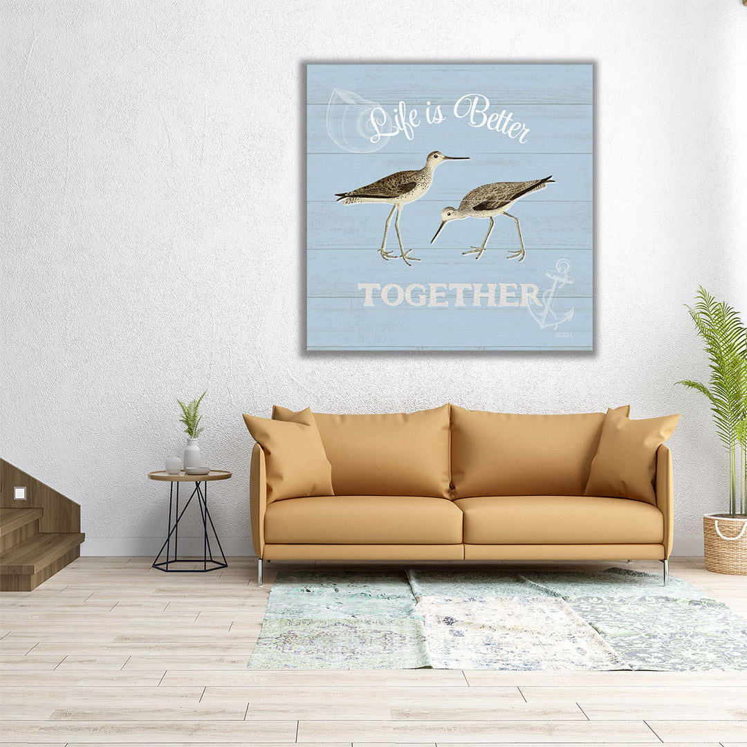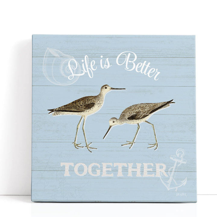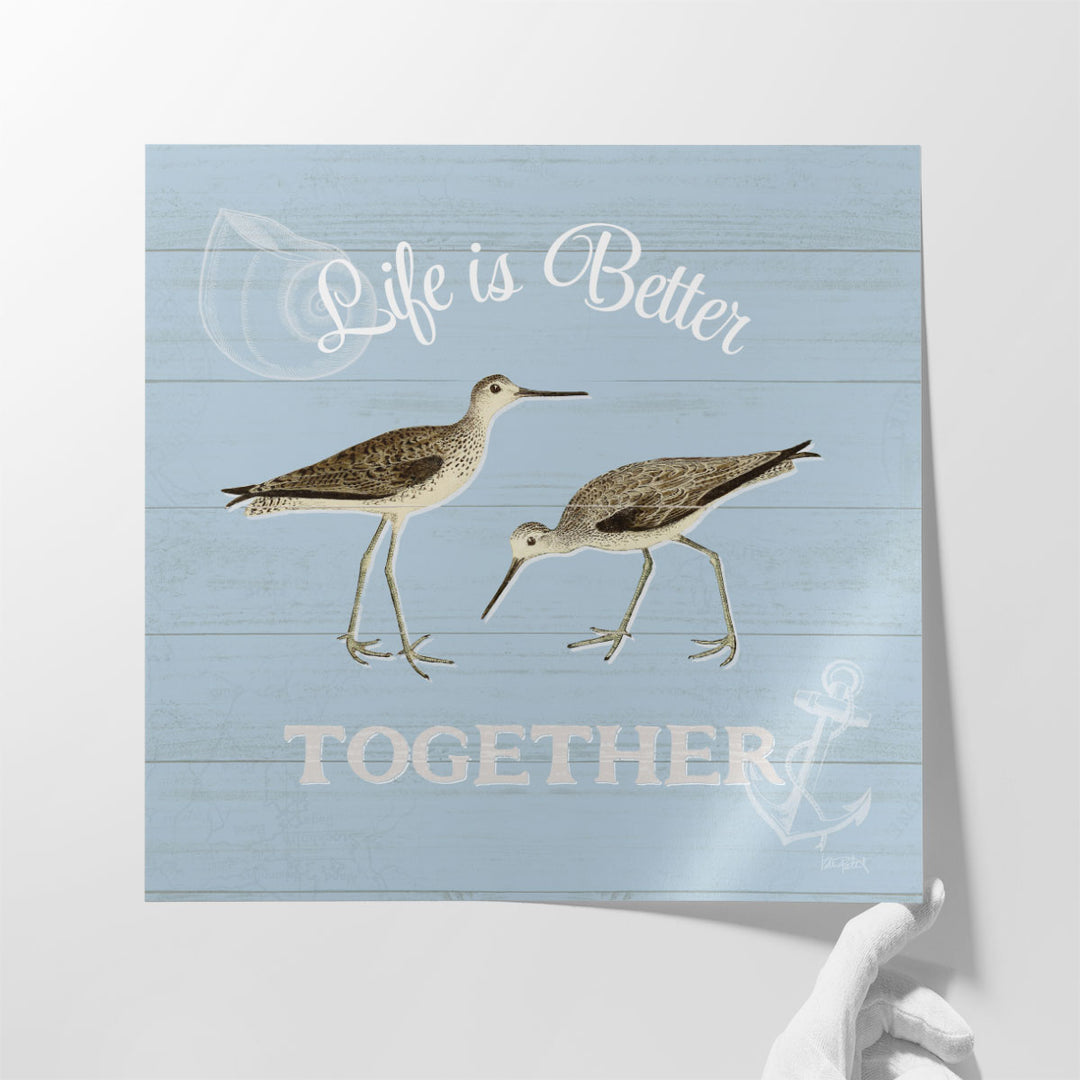 This heartwarming piece features two birds perched together, accompanied by the inspiring text "Life is Better Together," radiating charm and positivity.