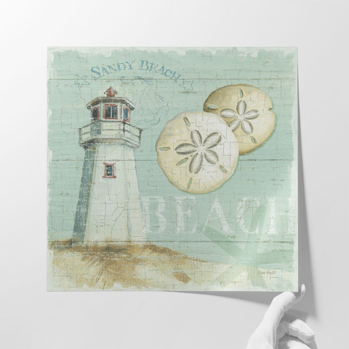 This art piece captures a scenic coastal view of a charming beach house, embodying the serene beauty of seaside living.