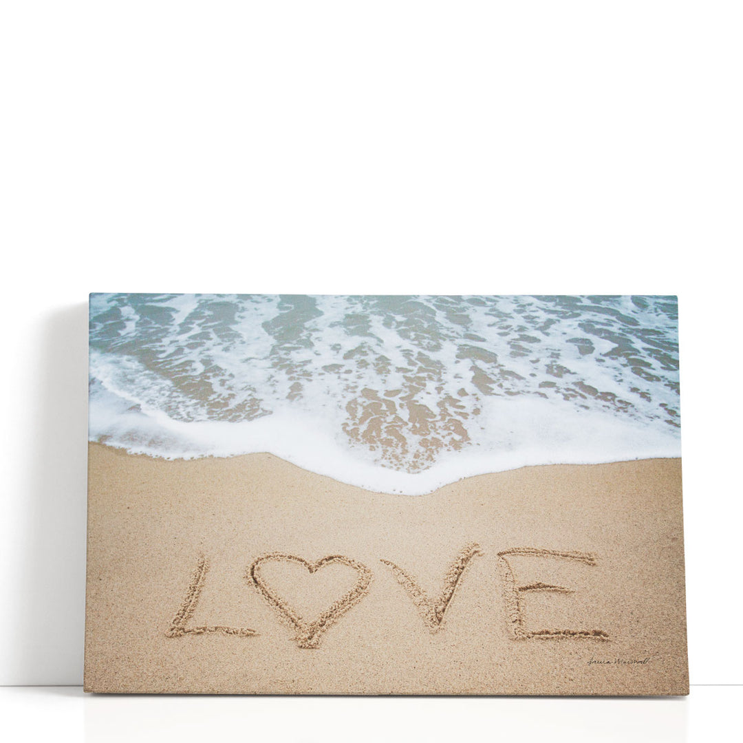 Brown Typography Coastal Decor, Romantic Blue Beach Wall Art, Unique Minimalistic Bedroom Canvas Art | Beach Love II
