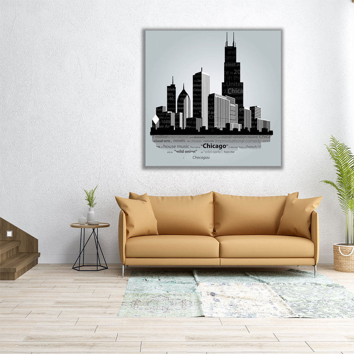 An architectural masterpiece showcasing a striking black skyline, featuring the dynamic interplay of buildings and typography against a vivid landscape.