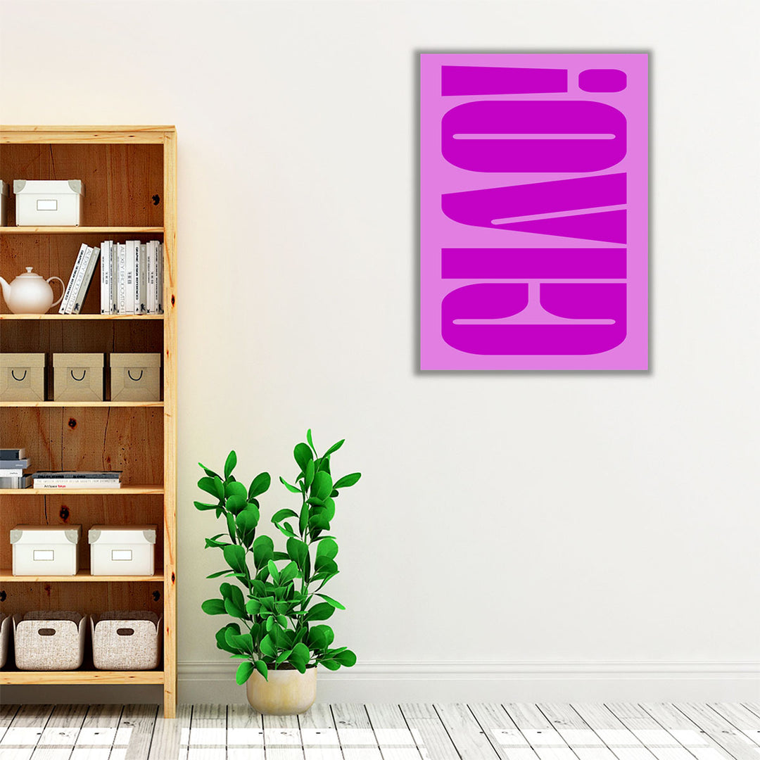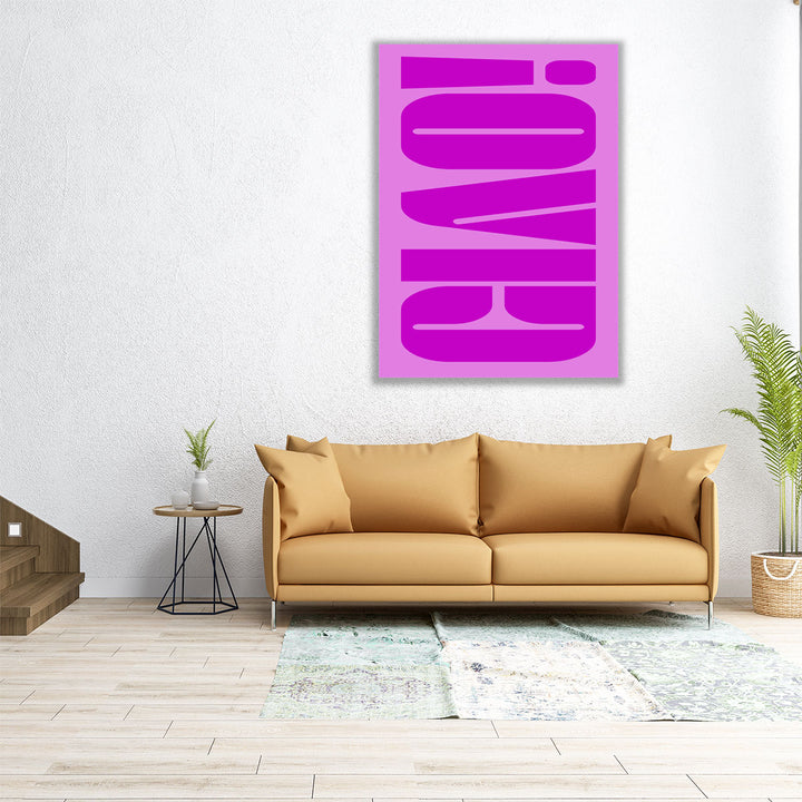 Playful typography in rich purple tones brings a modern flair to this bold artistic piece.