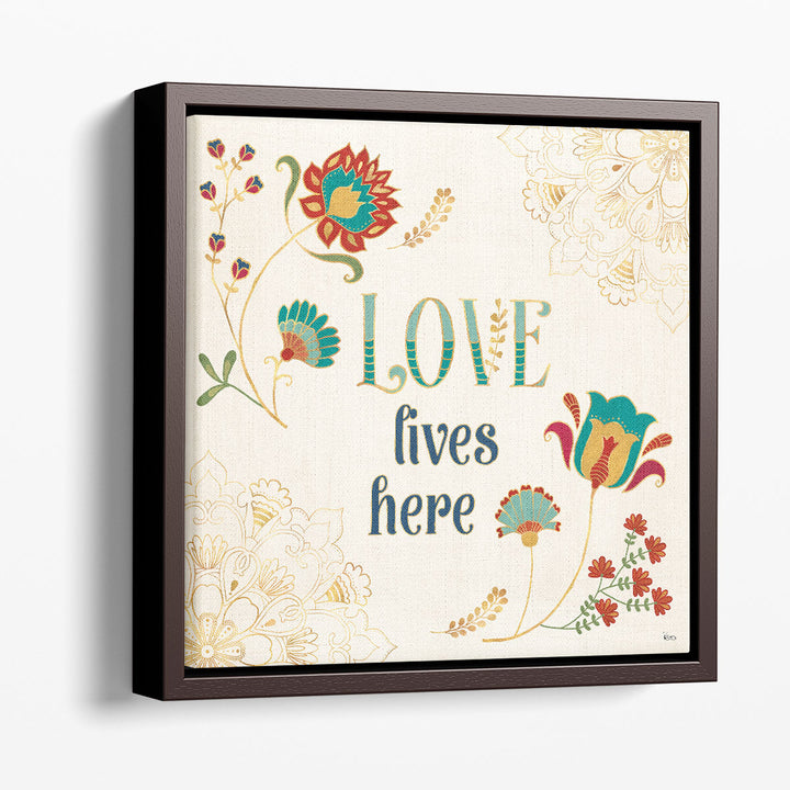 This enchanting piece combines typography and floral elements to express love through art, making it a perfect addition to any romantic space.