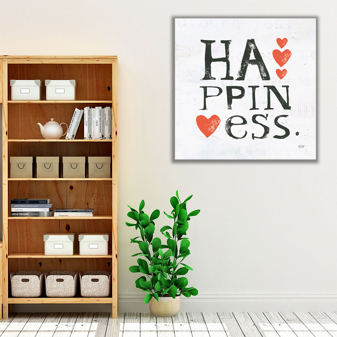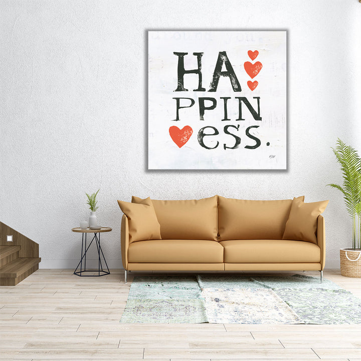 This typography-focused artwork features the word Happiness in a vibrant and artistic style, adding a cheerful touch to any space.