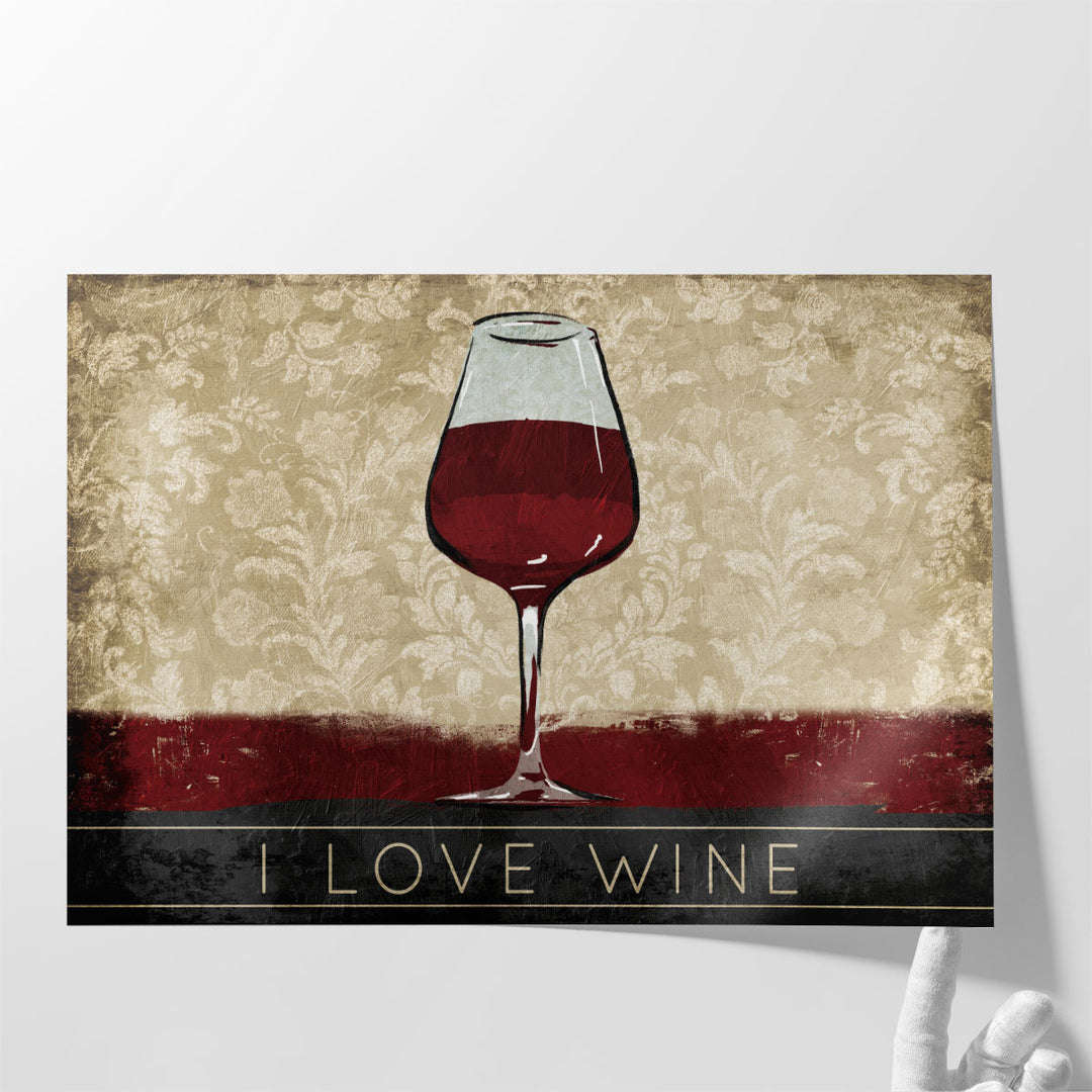 Big Vintage Home Bar Prints, Retro Typography Canvas Art, Beige Dining Room Paintings | I Love Wine