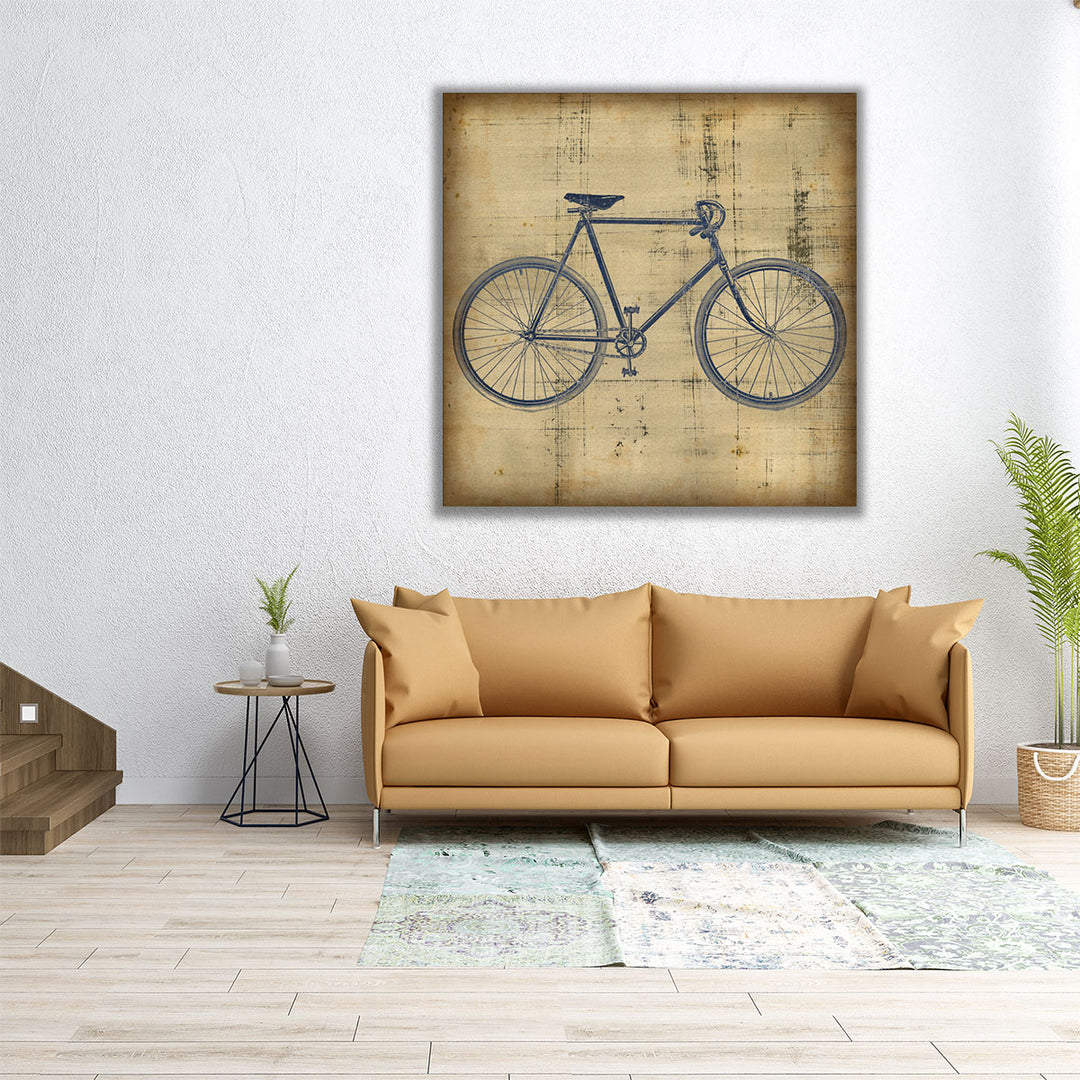 This stunning artwork features a vintage cycle in shades of brown and blue, embodying a classic and timeless aesthetic.