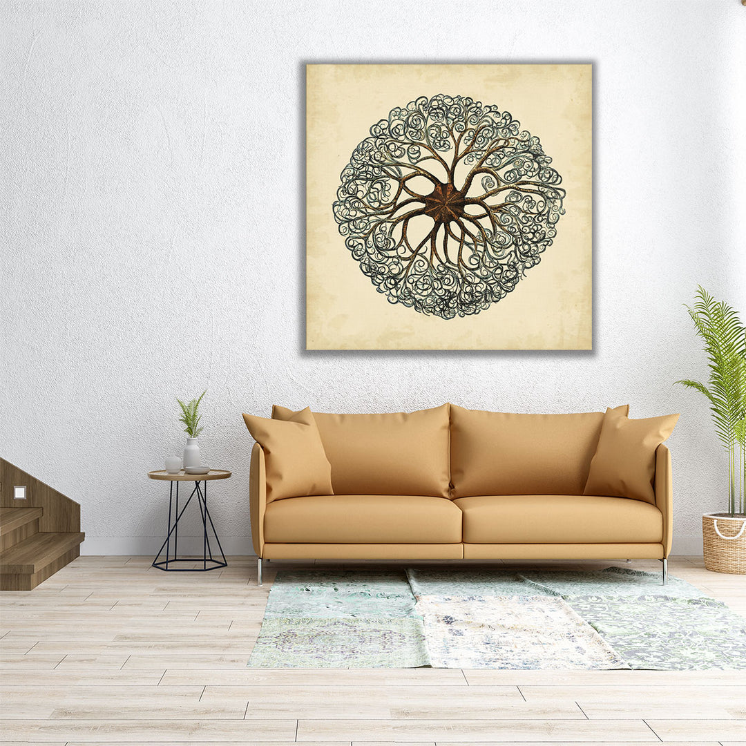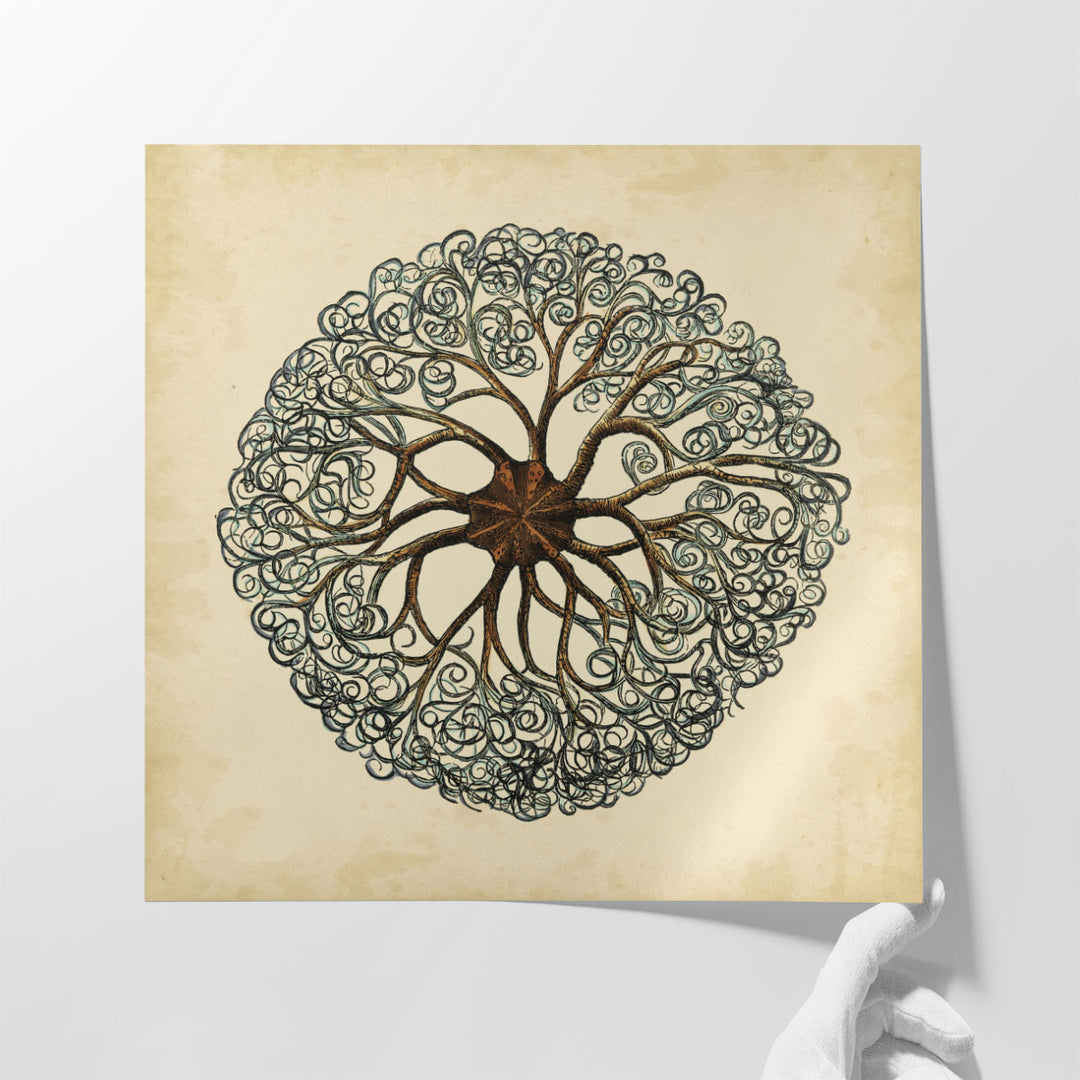 This neutral-toned art print showcases a beautiful squid, blending natural elements with sophisticated style.