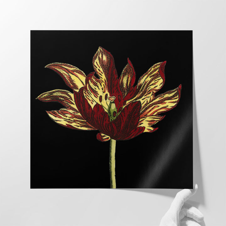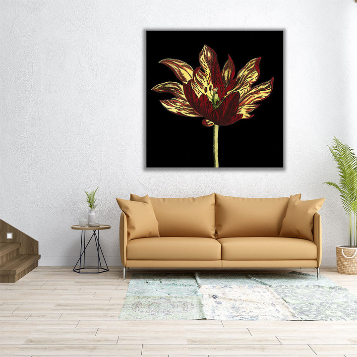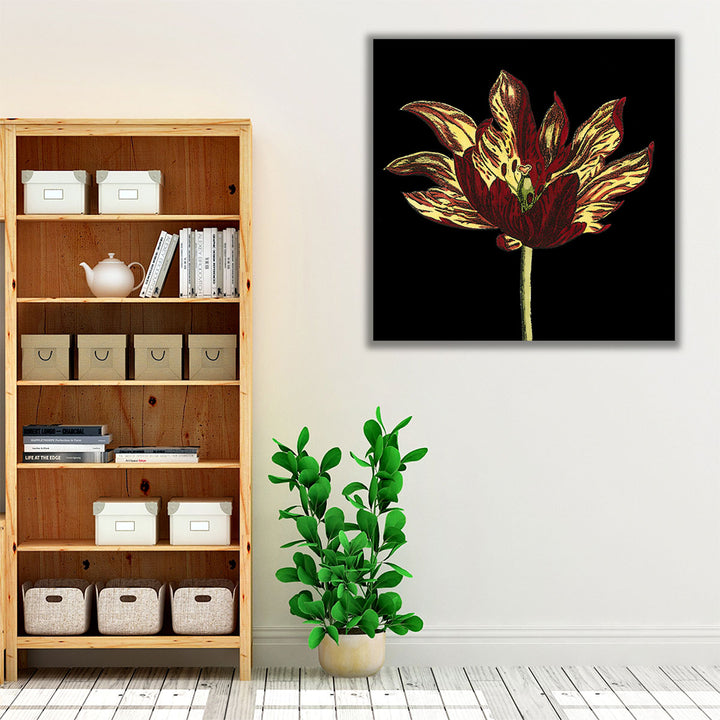 This stunning artwork by Vision Studio features a red and yellow flower set against a striking black background, making it a perfect focal point for any room.
