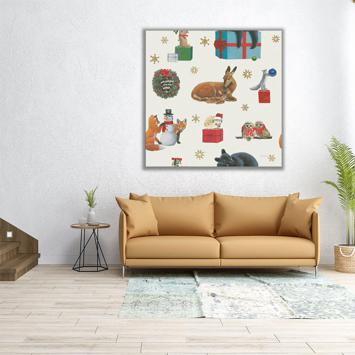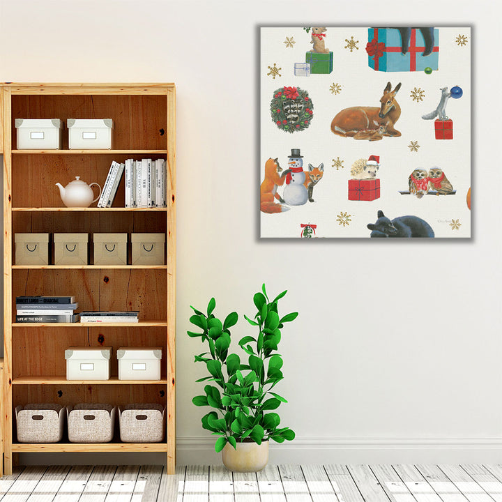 Christmas Critters Bright Pattern IIIB - Canvas Print Wall Art