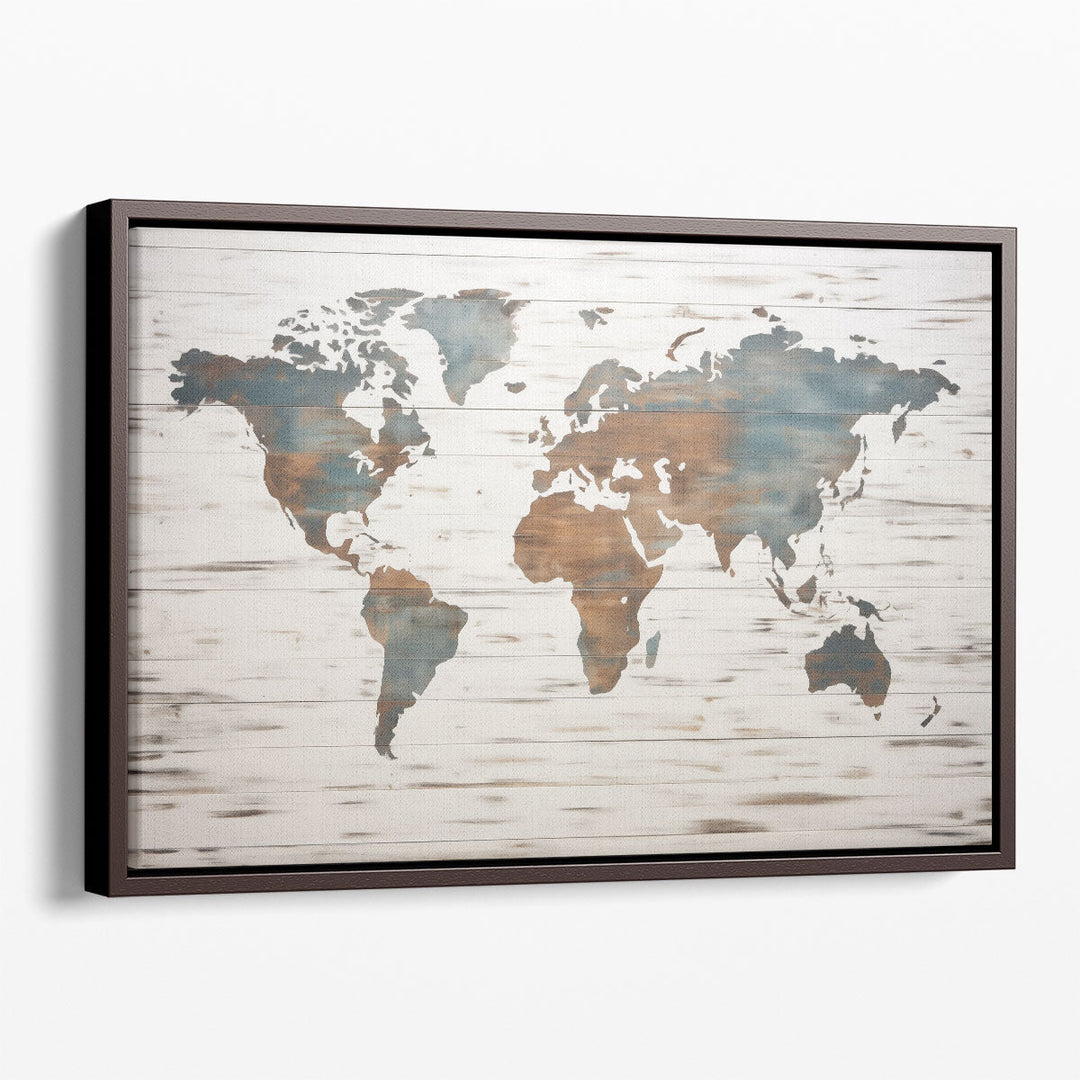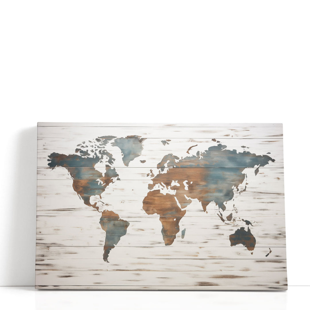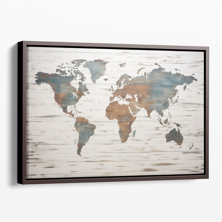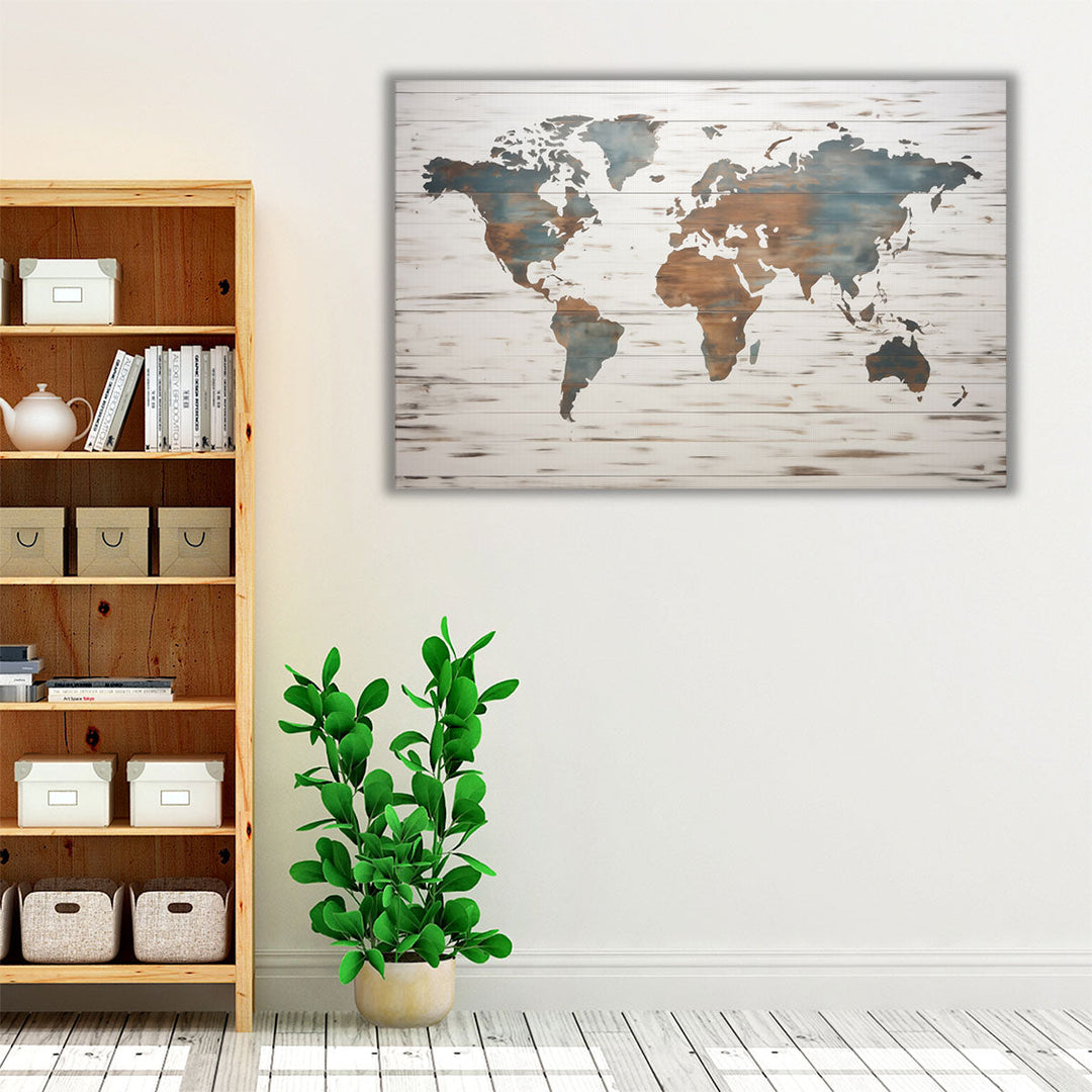 Earthy World Map on Wood - Canvas Print Wall Art