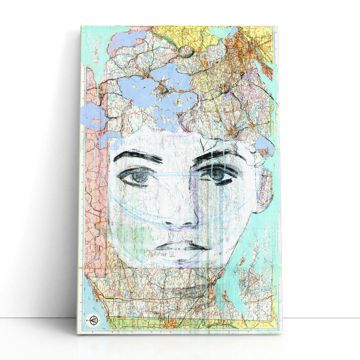 Vintage Face Wall Art, Floral Abstract Canvas Art, 40x60 Contemporary Art Prints for Entryway | Travel Beauty III