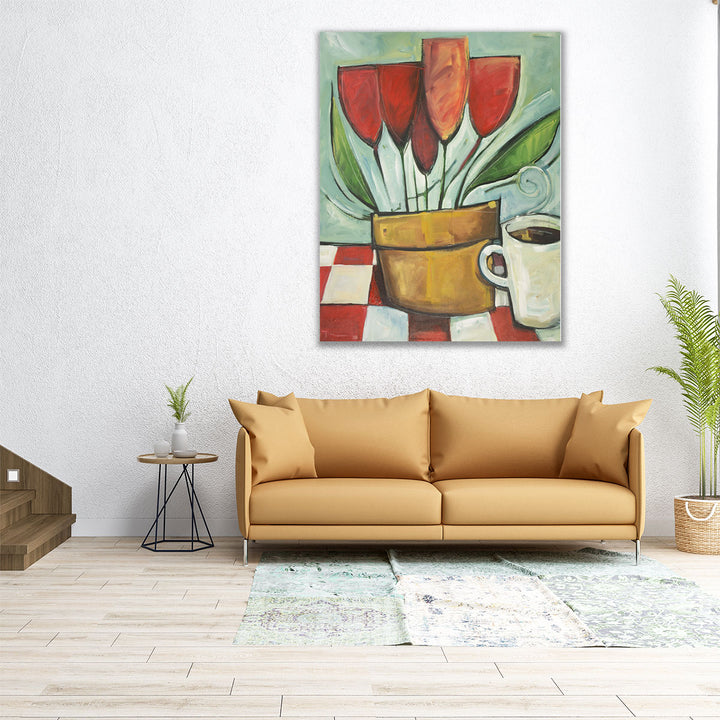 Tulips And Coffee Reprise - Canvas Print Wall Art